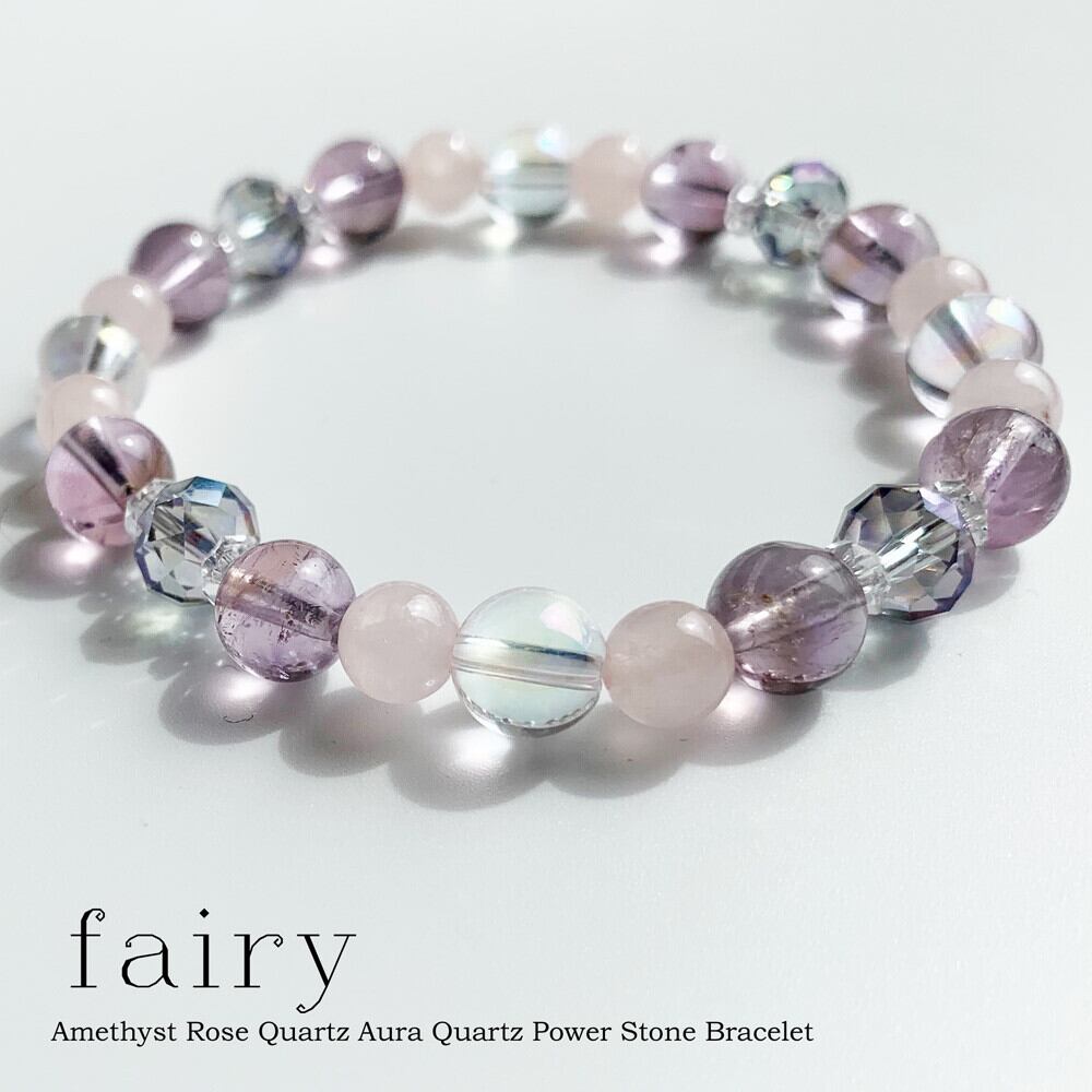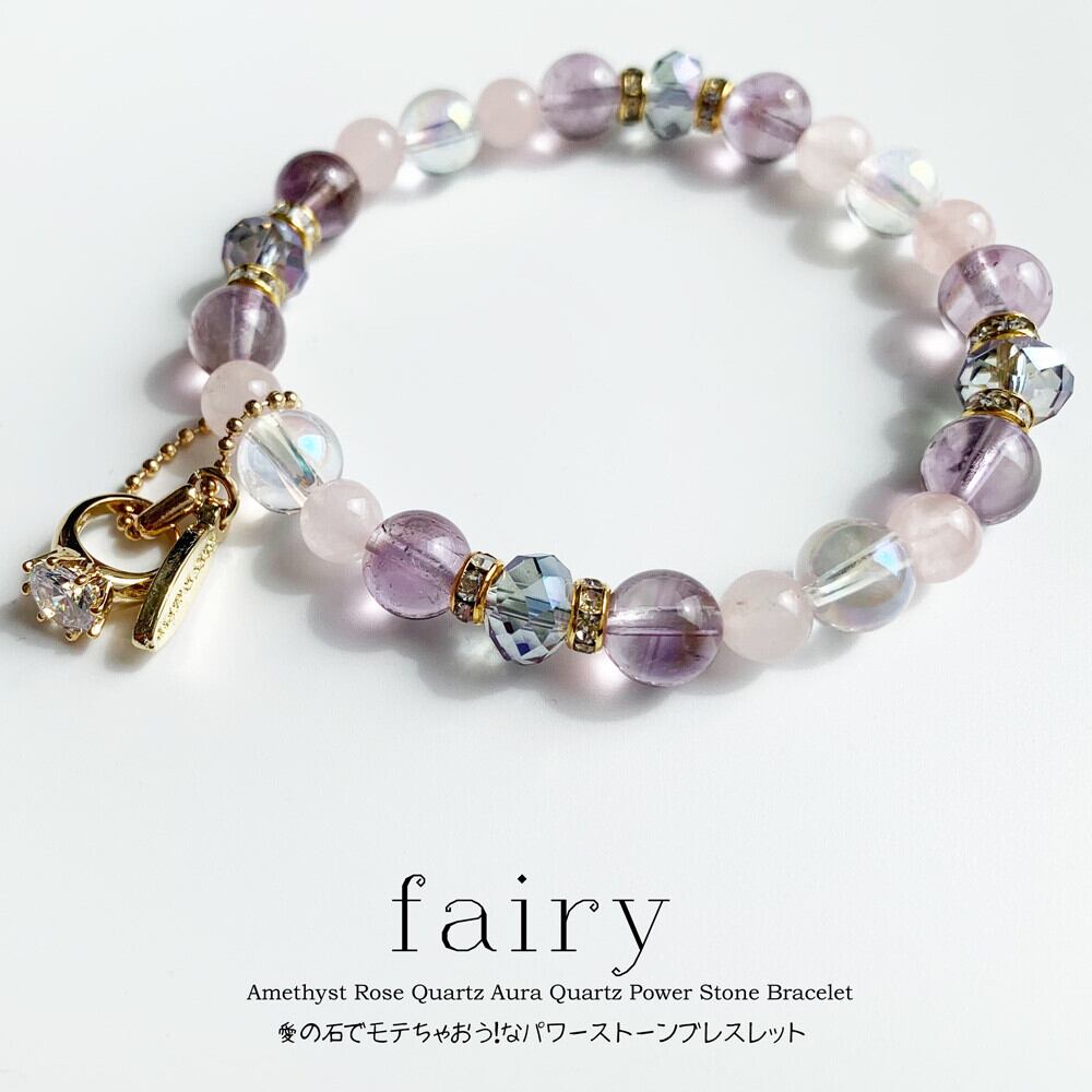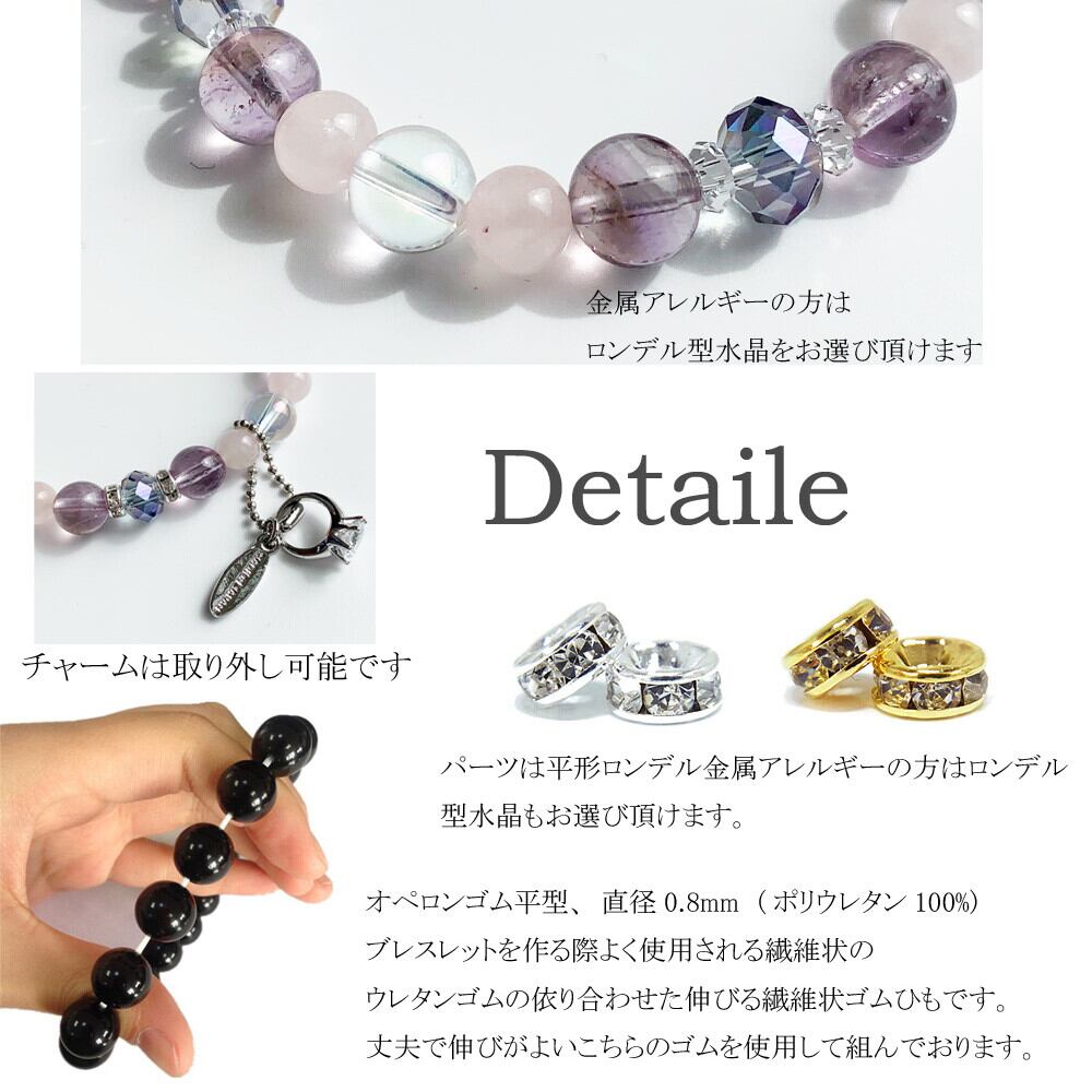 182 アメジスト ローズクォ―ツ ピンクシャンパンオーラ チャーム付きパワーストーン ビーズブレスレット