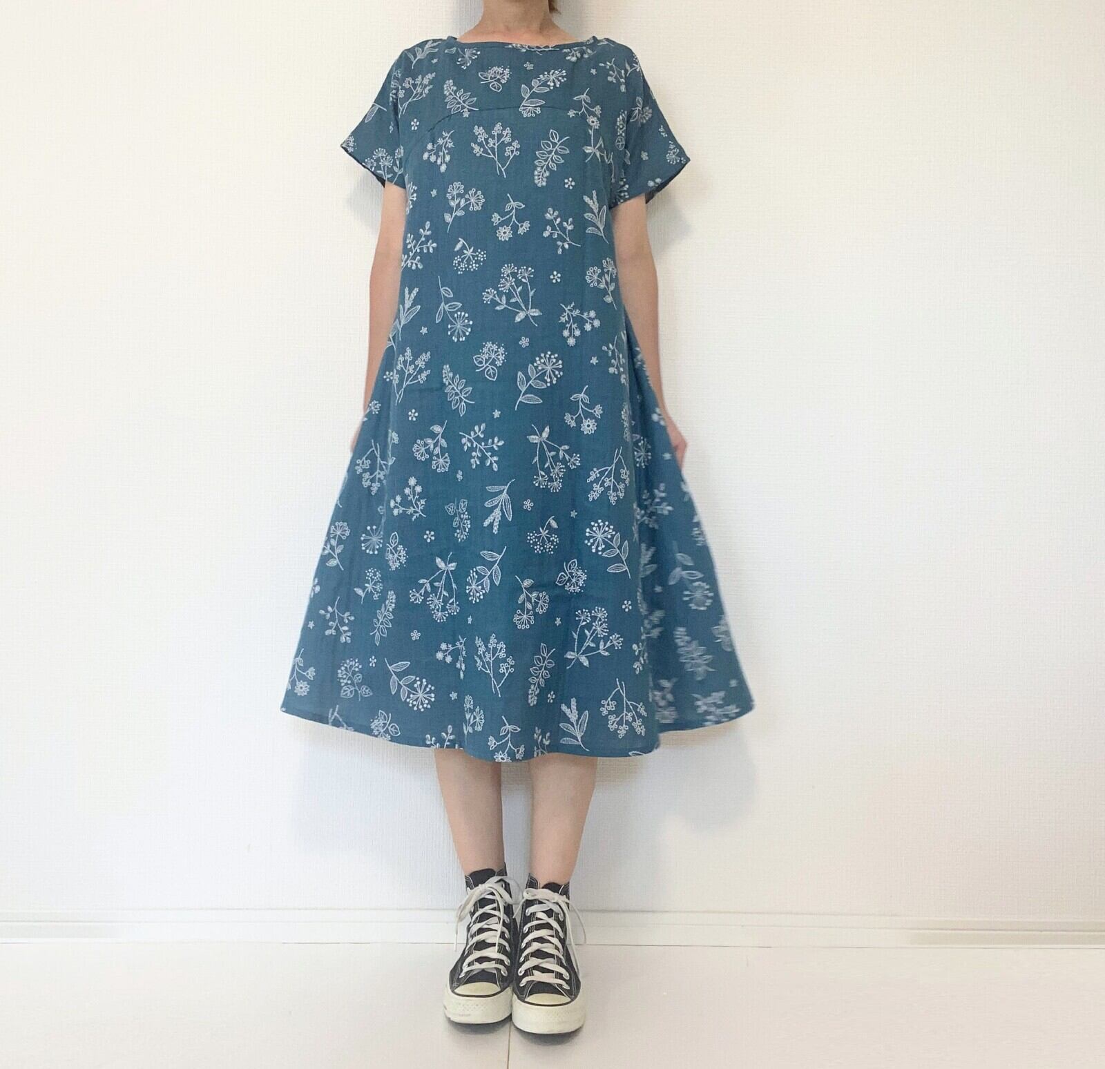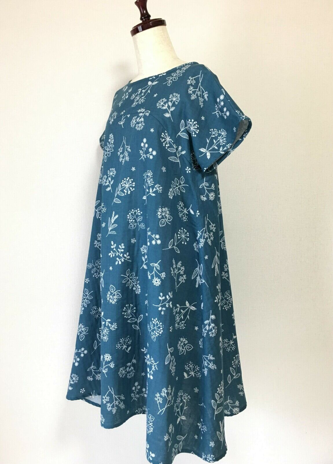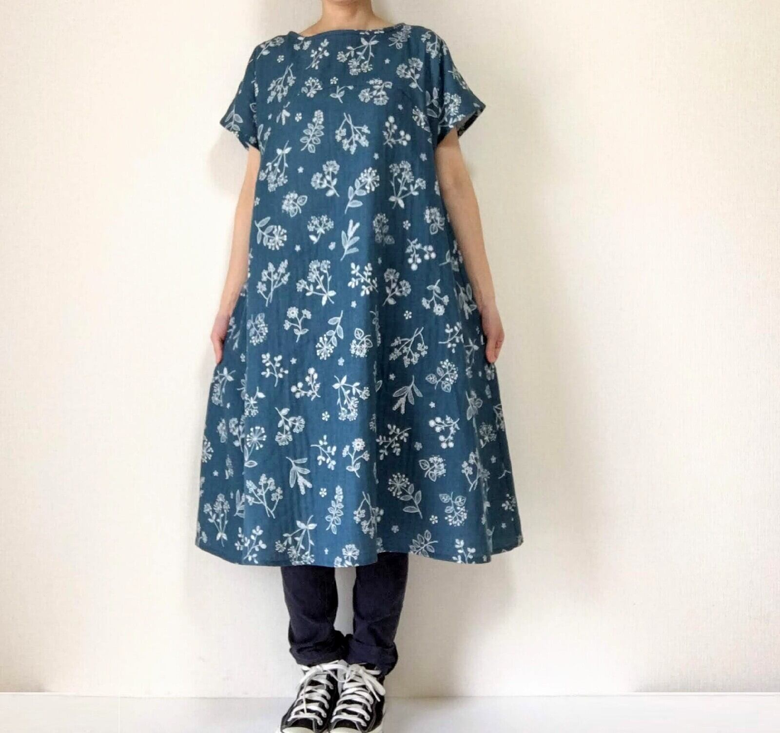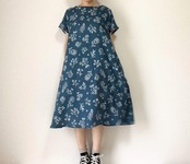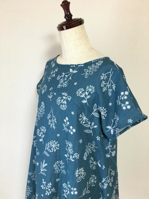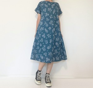 【handmade】Flower pattern double gauze dress cotton100 floral Harf sleeve