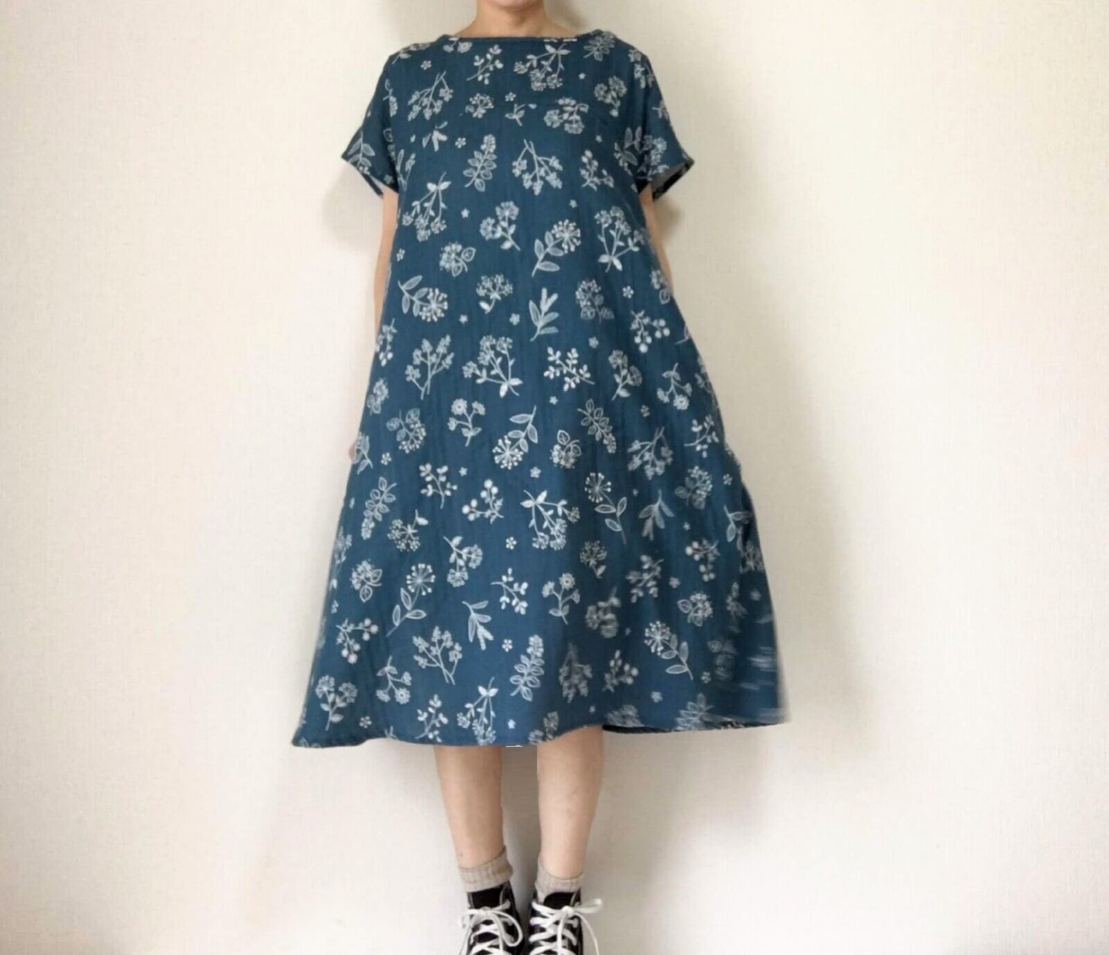 フレンチスリーブなので、肩幅が広めの方でも楽に着られます。